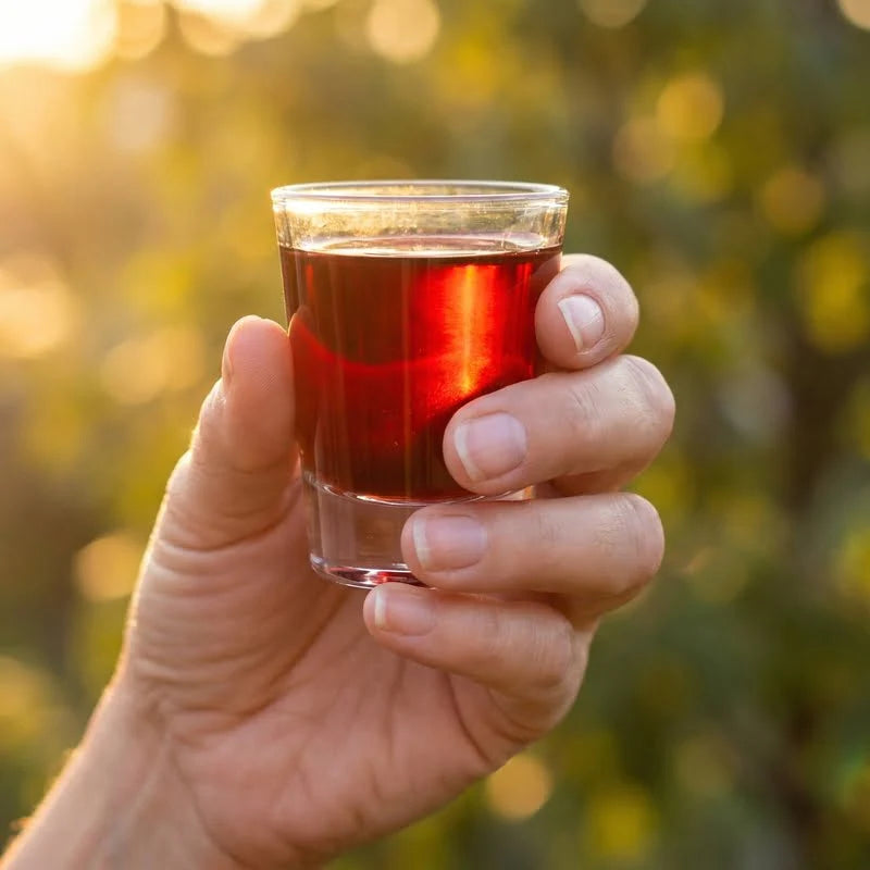 Hergestellt in der EU aus Rohstoffen in Premium‑Qualität. Jede Charge wird in Deutschland unabhängig auf Reinheit und Mikrobiologie geprüft. Transparenz, Vertrauen und Sicherheit bei jedem Shot.